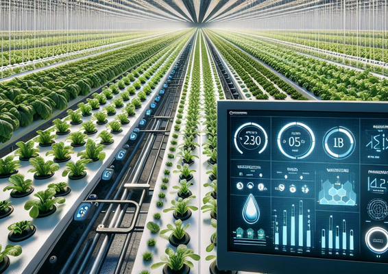 Умная ферма: Стеллажная система содержания животных с автоматизированной подачей воды и корма. Кормушки и поилки подключены к датчикам веса для контроля потребления.